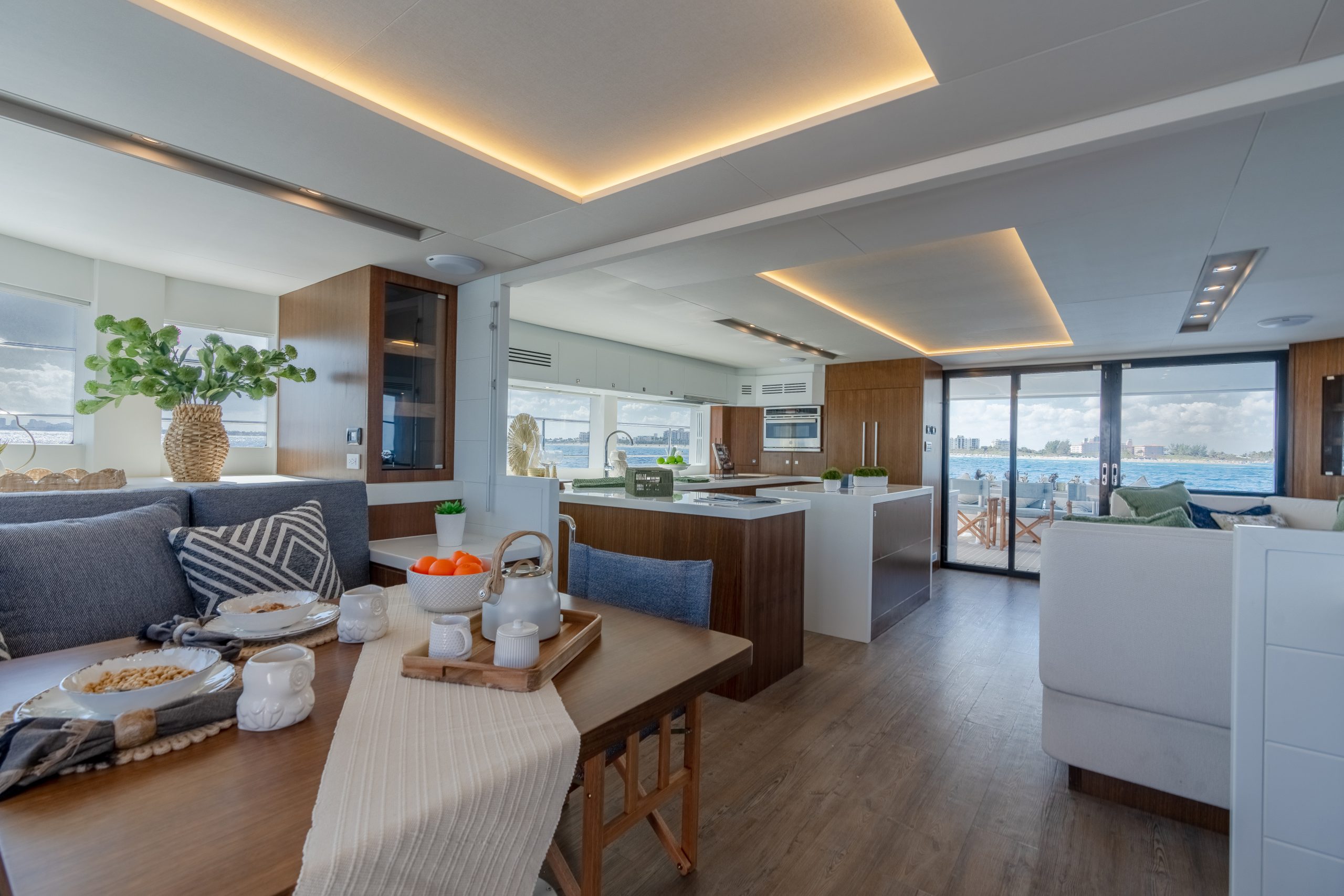 NOTE – ALL yacht photos currently relate to a sistership, and video credit is a courtesy of HMY Yacht Sales on behalf of Two Oceans 555. Customized photos will shortly REPLACE these stock photos to display this fabulous Powercat